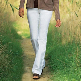 5-pocket styling cotton-spandex machine wash white 33" inseam sits just below waist boot-cut leg