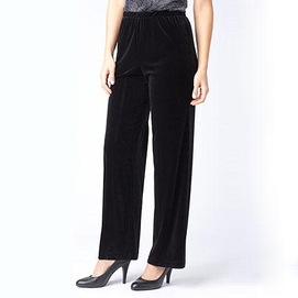 These pair of velvet pants look great and are nothing but comfort, you'll want to wear it all the time. Pair it with a nice top and you'll be ready for the weekend. velvet pant 90% polyester, 10% spandex dry clean only solid velvet