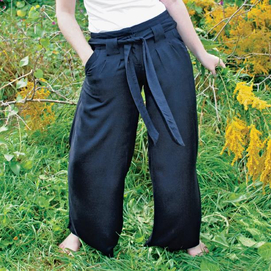 A generously wide leg pant with fitted wasitband. Yes World Boutique, designs inspired by arts and culture, allowing women to express themselves. Optional 2" tie belt Soft, flowy and comfortable All natural fine Viscose twill Dry clean Onlin... Read more