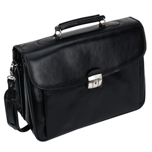 Bugatti Leather Executive Briefcase (54660-BL) - Black Genuine Leather with triple gussets and computer section that can hold a 15" laptop.