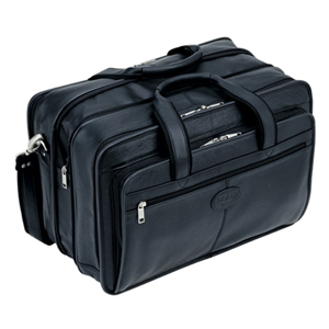 Bugatti Leather Expandable Briefcase (5164-BL) - Black Genuine leather expandable computer section (15") with multiple pockets.