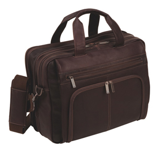 Bugatti Vaquetta Leather Briefcase (1144-BRW) - Brown Vaquetta leather computer section (15") with double gussets, top handles, and expandable bottom.