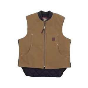 Outerwear Tough Duck Zip Front Vest Premium 12oz cotton duck with 6oz new polyester quilted nylon lining Full length expanding side knit panels, two upper and two side pockets Triple stitched and felled main seam with brass embossed rive... Read more