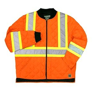 Outerwear Hi Visibility Quilted Safety Jacket Fluorescent orange Shell: 100% polyester Lining: 100% quilted polyester Dual inner pockets Rib-knit collar and cuffs Drop back Lower patch pockets Rib-knit back armhole gussets 3MTM Scotchlit... Read more