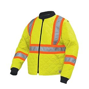 Outerwear Hi Visibility Quilted Safety Jacket Fluorescent yellow Shell: 100% polyester Lining: 100% quilted polyester Dual inner pockets Rib-knit collar and cuffs Drop back Lower patch pockets Rib-knit back armhole gussets 3MTM Scotchlit... Read more