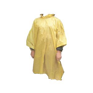 Outerwear Vinyl Poncho 100 % heavy guage heat sealed vinyl Fully waterproof Attached hood 2 snaps from waist down for protection Also suitable for ground cloth Size: full cut 52" x 80" (132 x 203cm)