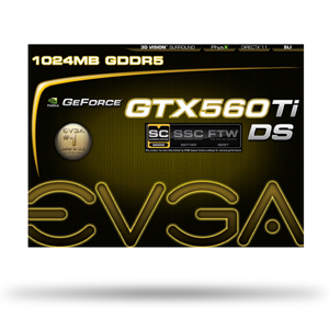 EVGA GeForce GTX 560 Ti DS Superclocked 1024MB GDDR5 (01G-P3-1567-AR) nVidia GeForce GTX 560 Ti Chipset(900MHz) 1024MB GDDR5 Memory(4212MHz) Dual-DVI/MIni-HDMI PCI Express 2.0 Graphics Card