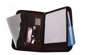 Leather case with 3 sided zip closure. Secure pocket for tablet, iPad or netbook up to 8.5" x 13.5". Containes all that a padfolio should and MORE!