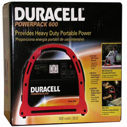 The Duracell Powerpack 600 is a stand-alone source of portable power for AC and DC-powered electronics such as a lamp, portable light, cordless or cell phone, GPS, small power tool, portable cooler, small appliance and more. Its rugged design an... Read more