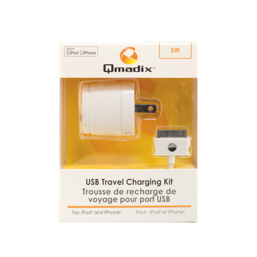Qmadix USB Travel Charging Kit with Sync Cable for Apple (QMC-2000AP) - White view