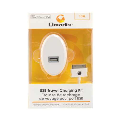 Qmadix USB Travel Charging Kit with Sync Cable for Apple (QMC-TCH2.1-AP) - White view