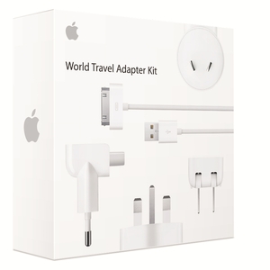 The World Travel Adaptor Kit includes an Apple USB Power Adaptor, a USB cable, and six interchangeable AC adaptor plugs for use with iPod, iPhone, and iPad. The adaptor plugs can also be used with Apple MagSafe Power Adaptors (for MacBook an... Read more