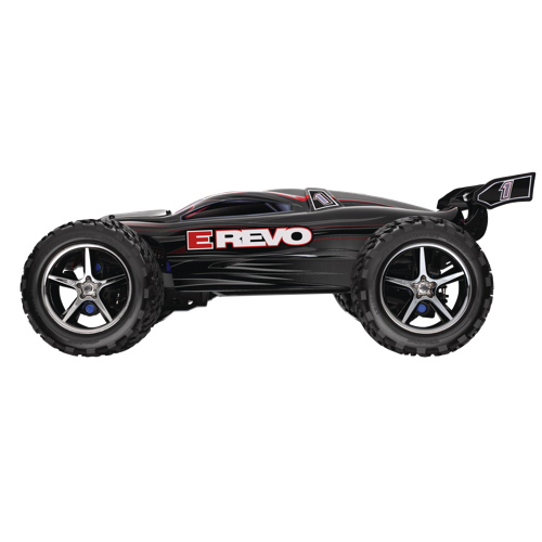 Traxxas E-Revo 4WD 1/10 Scale RC Monster Truck (5603) - Black/Silver Rip it up down the street or on the track with the Traxxas E-Revo, which uses dual Titan 550 motors and the 16.8-volt EVX-2 power system to propel it to high speeds ove... Read more