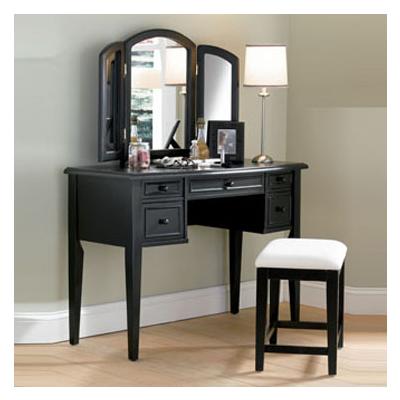 You can't help but feel pretty sitting in front of this transitional styled vanity with hinged tri-fold mirror for a side-to-side view. Crafted in MDF and solid wood, the generously sized top is large enough for writing. Five working curved drawer... Read more