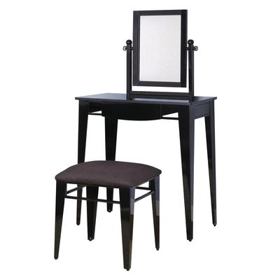 You can't help but feel glamorous sitting in front of this sleek glossy black vanity. The clean lines of the vanity are supported on four tapered legs. The rectangular mirror tilts to any angle and is supported on thick streamlined mirror supports... Read more