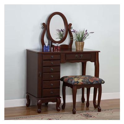 Powell Company Heirloom Cherry Jewelry Armoire Vanity, Mirror & Bench view