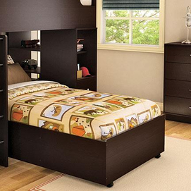 Multi-tasks by allowing for sleeping and studying in the same room thanks to multiple storage solutions Contemporary styling Sunny Pine / Pure White finish Sturdy wood product Full assembly required 76"l x 46"w x 16"h Made in Canada