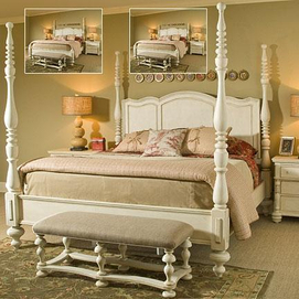 Country styling with casual country finish Easy country living Includes headboard, footboard and rails Available with linen finish or tobacco finish Constructed of hardwood solids and veneers Queen: 68"W x 86"H x 92"L. King: 82"W x 86"H x 92"L... Read more