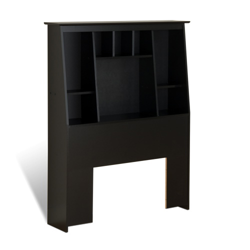 Prepac Single Bookcase Headboard (BSH-4556) - Black Get the most out of your bedroom's storage potential with the Single Tall Slant-Back Bookcase Headboard. With its unique yet versatile style, this headboard will perfectly complement your bedroo... Read more