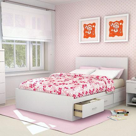 sturdy wood product in a choice of 2 finishes 56 w. x 76 1/2 d. x 15" h. whisper-quiet Euro-glide drawer slides with metal drawer pulls mattress, bedding and accessories shown not included READY-TO-ASSEMBLE Instructions and toll-free help numbe... Read more