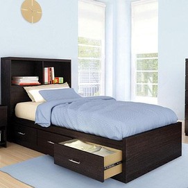 sturdy wood product in a choice of 2 finishes 40 1/2 w. x 76 1/2 d. x 15" h. whisper-quiet Euro-glide drawer slides with metal drawer pulls mattress, bedding and accessories shown not included READY-TO-ASSEMBLE Instructions and toll-free hel... Read more