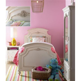 Transend from youth to all ages Traditional Constructed of solid wood and veneers Cream White Decorative flower appliqué on headboard and footboard as well as turned and molded lower feet Twin: 42 x 82 x 54, Double: 57 x 82 x 55 Bolt on rails... Read more