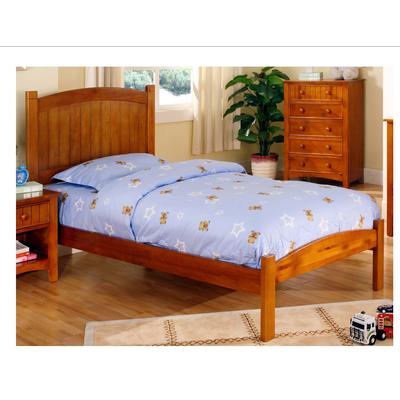 Simple clean lines for this traditional twin size bed. Stylish curved footboard and headboard with plank detailing. 12 wood slats for mattress support. Made of select solids and wood veneers in a Rustic Pine colour. Also available in Double size... Read more