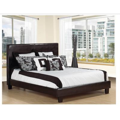 Contemporary styling at its best. Sleek clean lines fro this bed. Headboard, footboard and rails made of faux black leather. The platform comes with 4 horizontal slats, 1 vertical slat and 2 support legs. Requires a boxspring. Also available i... Read more