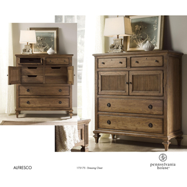 Constructed of white oak solids with oak veneers Distressed cappuccino finish Features english dovetail drawer construction, stained and sealed drawer sides, and wood on wood drawer guides Features 3 drawers and back top lift lid with powe... Read more