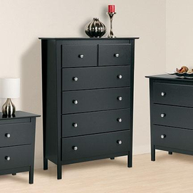 33 1/2'' w. x 15 3/4'' d. x 48'' h. Drawers slide smoothly on all-metal glides. Brushed nickel knobs. Tapered legs. Wood product. Assembly required. Made in Canada. READY-TO-ASSEMBLE. Instructions and toll-free help number are included.