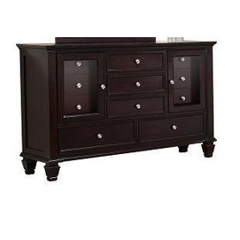 Clean lines and a classic style. Constructed with quality maple wood veneers finished in a deep cappuccino.Sophisticated paneled details for a classic look.Square turned feet are a perfect finishing touch.Nickel finish hardware. Eleven drawer... Read more