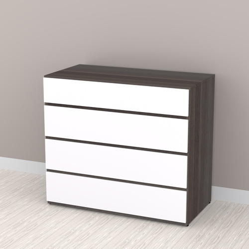 Nexera Allure 4-Drawaer Chest - White and Black Contemporary, sleek and inspiring, the Allure Bedroom Collection is simple, timeless and functional. Offered with two 3-drawer storage beds (twin and full). Product Features 4 Drawer Chest