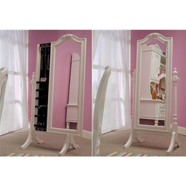 Transend from youth to all ages Traditional Constructed of solid wood and veneers Cream White Full beveled mirror face slides open to jewelry storage compartment with multiple shelves and hooks Antiqued cream white hardware 25 x 21 x 65 Onl... Read more