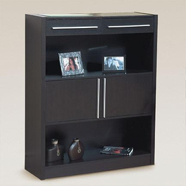 hidden storage behind 2 doors 1 drawer 45" w. x 12" d. x 37" h. sturdy wood product in a cappuccino finish built-in power bar with phone and network outlets desks A-C have slide out keyboard trays assembly required An integrated power ba... Read more