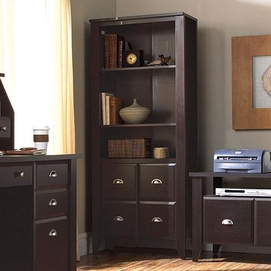 Rich jamocha finish 3 adjustable shelves Storage behind 2 doors 28 3/8" w. x 14 6/8" d. x 68 1/8" h. Sturdy wood product All hardware in nickeltone finish Healthy home: eco-friendly materials: constructed using coatings and adhesives that have... Read more