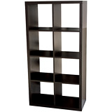 8 cubes providing storage. 30.5 in. x 15.4 in. x 58.7 in. Brown-black. To be assembled.