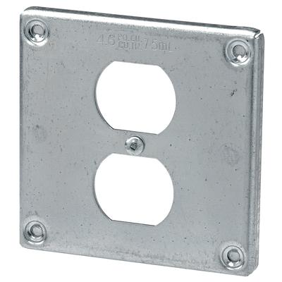 To install a duplex receptacle into a 4" square box. 3/8" raised Cover 4.6 cu. In. For duplex receptacle