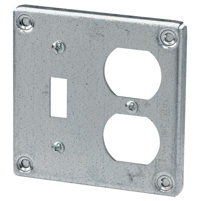 To install a toggle switch and a duplex receptacle into a 4" square box. 3/8" raised Cover 4.6 cu. In. For a toggle switch and a duplex receptacle