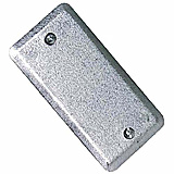 4 in. x 2 1/8 in. For all-purpose box. Mounting screws included. Made of galvanized steel. Without opening. Also available with double outlet.
