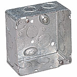 Outlet box. 4 in. x 4 in. 2 1/8 in. thick. 4-in. square junction boxes are mainly used for multiple wire connections, using proper connectors, in commercial/industrial applications. Box must be closed with a flat junction box cover. Extensions ar... Read more