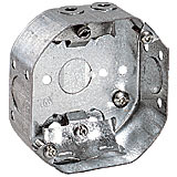 Outlet box. 4 in. x 4 in. x 1 1/2 in. Made of galvanized steel. Octogonal junction boxes with "Loomex" clamps are used for lighting fixture installation or to make wire connections, in which case, a flat round junction box cover is required. Als... Read more