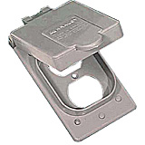 For outdoor weatherproof power applications. Use with duplex receptacle (not included). Grey. Also offered in white.