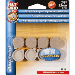 Felt Pads 7/8" Replacement Felt Caps Snap-on felt caps are easy to remove and replace when worn Eliminates problems of adhesion Beige