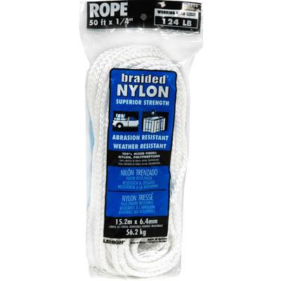 Nylon resists abrasion, rot and mildew, as well as the effects of most chemicals. Ideal as an all-purpose tiedown. A Flexible, Stong And Durable Rope Excellent Abrasion Resistance Not Affected By Rot, Mildew Or Most Chemicals