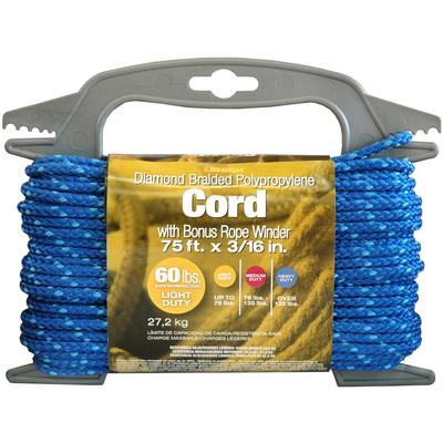 Diamond braid polypropylene is easier to handle than twisted polypropylene or natural fiber ropes, and has twice the strength of manila. It will not rot or mildew, even when stored damp. Because it floats, it pos excellent for use around water, too.... Read more