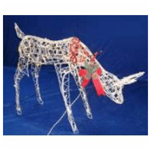 Lighted Frames Grapevine Feeding Doe Sculpture Indoor/outdoor use Knock down construction Coated metal frame Champagne colour 30" lead wire 42" INCLUDES: Spare bulbs Metal stakes 60 LED lights: 8 random twinkle LED's, 52 Steady LEDS's
