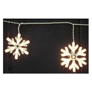 Outdoor, Incand - 100 light CSA outdoor snowflake curtain 4 large and 2 small snowflakes 18" spacing 90" lighted length 6" leads All clear bulbs