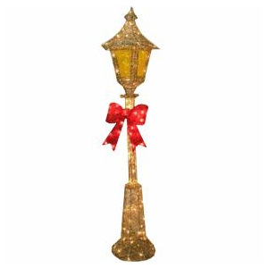 Lighted Frames Lighted Lamp Post Frame Outdoor use Gold metal mesh with red sisal bow 85 lights 60"