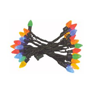 Outdoor, Led - Patented one piece construction Gold 25 LED lights, C7 Lense 5 colour multi red/yellow/orange/blue/pure green 8" spacing, lighted length 16' Connect up to 180 sets, end to end, green wire Lights are cool to the touch Colour... Read more