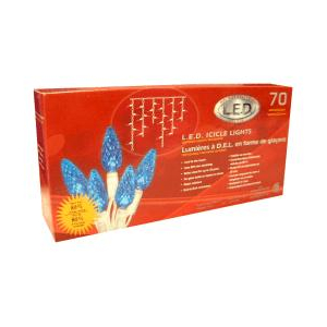 Outdoor, Led - Patented one piece construction Blue 70 LED lights, C6 lense 6" spacing, lighted length 8' Connect up to 45 sets, end to end, white wire Lights are cool to the touch Colours will not fade or peel No glass to break No bulb... Read more